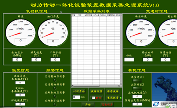 動力傳動組合試驗系統能夠進行冷卻系、潤滑系、液壓系統及各管路工作狀態檢查,動力傳動系統一體化空載運轉性能檢查,動力傳動監控系統功能檢查,以及各部分和管路的密封檢查等,主要包含以下功能: