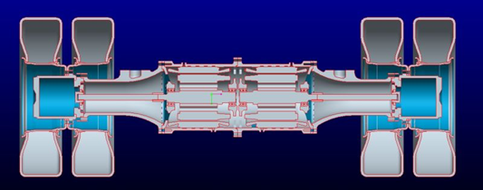 電動橋由四象限變頻輪邊電機直接驅動,無需變速箱、差速器、傳動軸等傳統機械傳動結構。通過電力控制,驅動橋牽引力無可調,可實現恒牽引力或恒車速控制功能,制動能量可以回收,每根電動橋可輸出上限300kW牽引功率。?